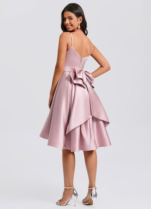 Chaque élément de cette Robe De Bal Satin Rose Élégant a été pensé pour vous offrir un style incomparable. Le bustier est orné de plissés délicats qui structurent la silhouette et ajoutent une dimension texturée raffinée. À l'arrière, un grand nœud élégant apporte une touche romantique et un charme irrésistible, faisant de cette robe une œuvre d'art sous tous les angles. La coupe asymétrique de la jupe, plus courte devant et plus longue derrière, ajoute une modernité audacieuse tout en conservant une allure chic et sophistiquée. Le zip arrière assure une fermeture discrète et un ajustement parfait, garantissant que vous vous sentirez à l'aise et soutenue tout au long de votre événement.