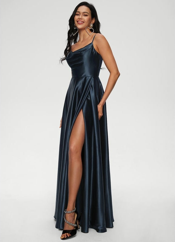 Cette robe de bal satin rose poudré se distingue par son design réfléchi et ses détails charmants. Sa forme trapèze est universellement flatteuse, offrant une silhouette élégante et confortable qui met en valeur toutes les morphologies. Le col bénitier apporte une touche de sophistication et de féminité, encadrant délicatement votre décolleté sans être trop révélateur. Mais ce qui fait vraiment la différence, c'est sa fente audacieuse sur la jambe, ajoutant une dimension moderne et un soupçon de glamour à votre démarche. Confectionnée en satin de haute qualité, elle est entièrement doublée pour un confort optimal et intègre un soutien-gorge pour un maintien parfait, vous permettant de danser et de profiter de chaque instant sans soucis. Son zip arrière discret assure un ajustement impeccable et une facilité d'enfilage.