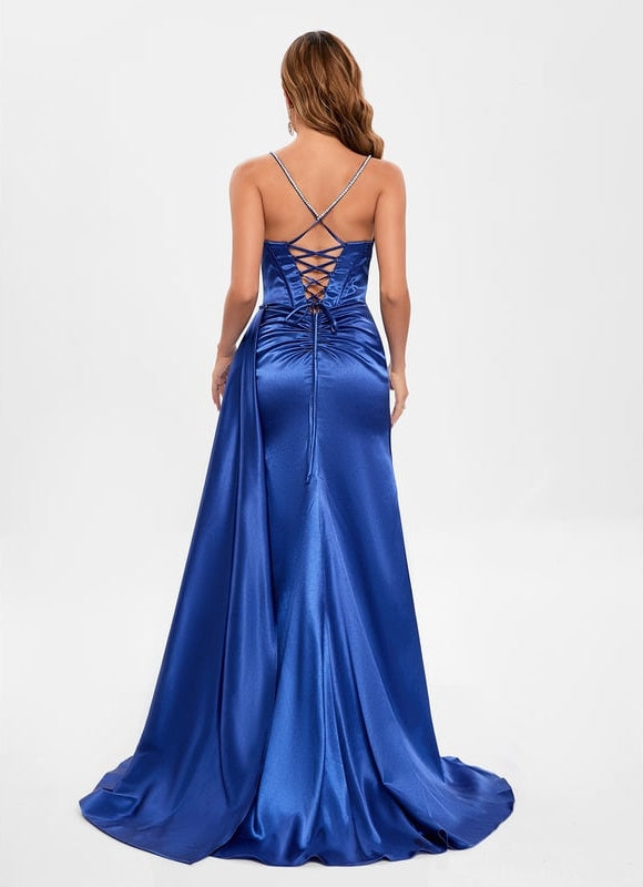 Découvrez l'alliance parfaite de l'élégance intemporelle et de la modernité avec cette Robe De Bal Satinée Élégante unique. Son design convertible est un véritable atout : les bretelles croisées dans le dos peuvent être ajustées pour créer différents looks, vous offrant une polyvalence incroyable pour adapter votre style à l'occasion ou à votre humeur. Le satin de haute qualité assure un tombé fluide qui épouse magnifiquement la forme sirène, allongeant votre silhouette avec grâce. La fente sur la jambe, savamment placée, ajoute une touche de sensualité et facilite vos mouvements, vous permettant de danser toute la nuit avec aisance. Les strass délicatement appliqués sur les bretelles et les détails du corsage captent la lumière, vous enveloppant d'une aura de sophistication et de luxe.