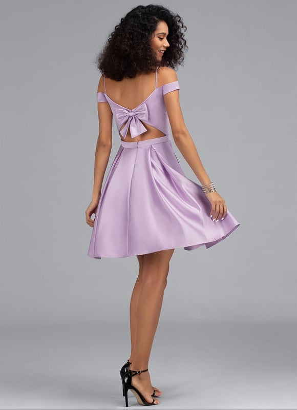 Chaque détail de cette robe a été pensé pour sublimer votre silhouette et mettre en valeur votre féminité. Le col épaule dénudée, délicatement soutenu par de fines bretelles, mettra en valeur vos épaules et votre décolleté avec une élégance raffinée. Sa coupe trapèze, à la fois flatteuse et confortable, offre une liberté de mouvement idéale pour danser et profiter pleinement de votre soirée. Mais le véritable coup de cœur se trouve au dos : un adorable nœud décoratif, parfaitement assorti, ajoute une touche de fantaisie et de romantisme, transformant chaque départ en une déclaration de style. La longueur courte de la robe est parfaite pour afficher vos jambes et vous sentir légère et pétillante.