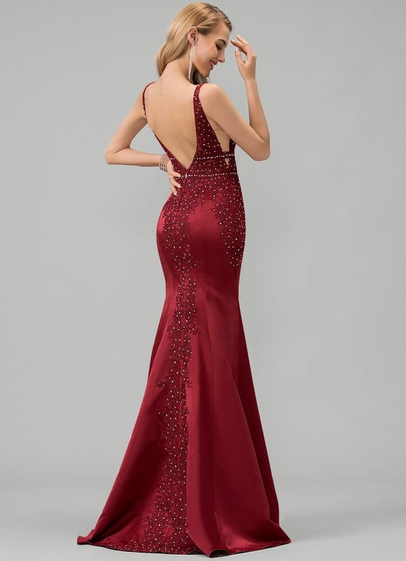 Cette Robe De Bal Satinée Rubis est une œuvre d'art qui combine un savoir-faire méticuleux et un design contemporain. La coupe sirène, synonyme de glamour intemporel, met en valeur la silhouette féminine de manière spectaculaire, s'évasant gracieusement vers le bas pour une allure majestueuse. Le bustier, orné de perles fines et de paillettes scintillantes, attire l'attention sur le décolleté en V flatteur, tandis que ces mêmes ornements descendent délicatement le long des hanches, créant un effet visuel éblouissant. Le dos zippé assure un ajustement parfait et une facilité d'enfilage, tandis que la doublure complète et le soutien-gorge intégré garantissent un confort absolu et une tenue impeccable tout au long de votre événement. Vous n'aurez qu'à vous soucier de profiter de l'instant présent, en sachant que votre robe est aussi confortable qu'elle est spectaculaire.