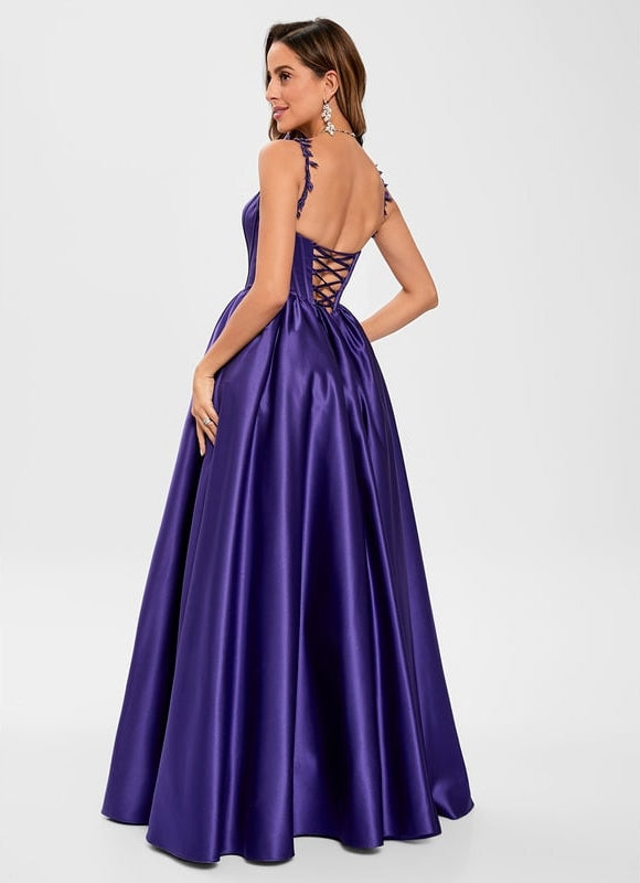 Plongez dans l'Élégance avec notre Robe De Bal Satinée Violette