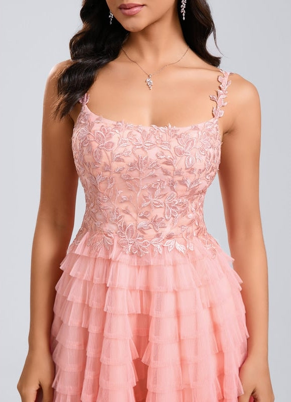 Laissez-vous séduire par le design enchanteur de cette Robe De Bal Tulle Froncée Rose. Le haut, confectionné en dentelle raffinée, offre une texture riche et un visuel captivant, soulignant votre silhouette avec grâce. La jupe, composée de multiples volants de tulle, crée un volume ludique et une fluidité qui bouge avec vous, ajoutant une touche de fantaisie à votre démarche. Sa longueur courte est parfaite pour mettre en valeur vos jambes et vous permettre de bouger librement, que ce soit pour une valse ou une danse endiablée. Grâce à sa doublure complète et son soutien-gorge intégré, vous bénéficiez d'un confort et d'un maintien parfait, sans compromis sur le style. Le zip arrière assure un enfilage facile et discret, pour une silhouette impeccable sous tous les angles.